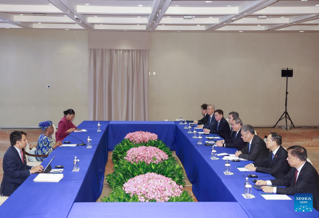 Chinese Premier Li Qiang meets with Director-General of the World Trade Organization (WTO) Ngozi Okonjo-Iweala in Rio de Janeiro, Brazil, July 7, 2025. (Xinhua/Wang Ye)