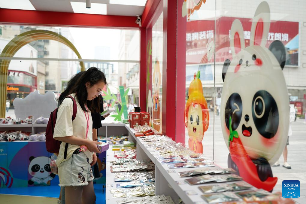 This photo taken on July 8, 2025 shows an official licensed products store for the World Games 2025 in Chengdu, southwest China's Sichuan Province. The Games hit the 30-day countdown mark today and will be held from August 7 to 17. (Xinhua/Xu Bingjie)