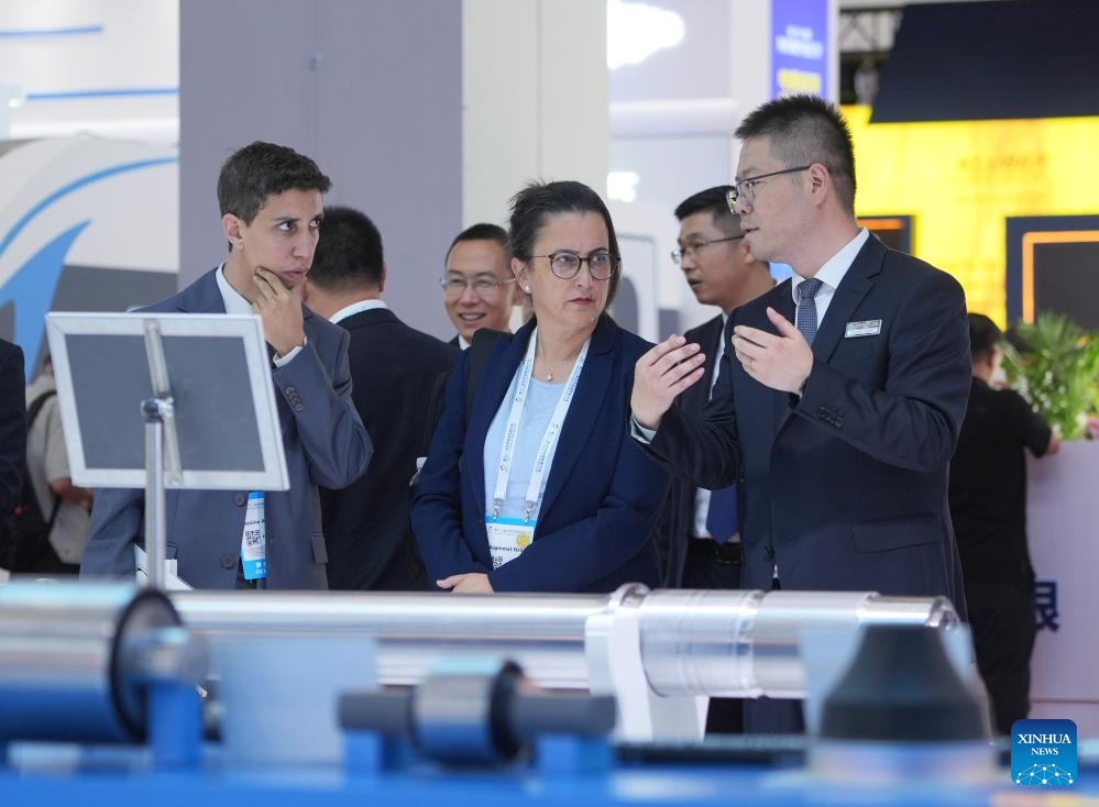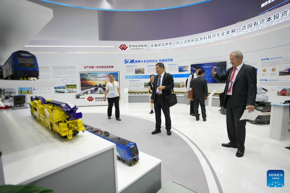 People visit the Modern Railways 2025 exhibition in Beijing, capital of China, July 8, 2025. The exhibition kicked off here on Tuesday, showcasing advanced railway technologies and equipments from all over the world. (Xinhua/Xing Guangli)