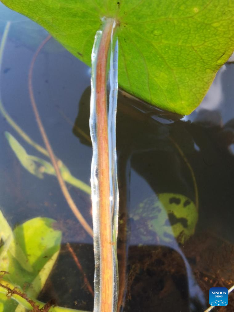 HARBIN, July 8 (Xinhua) -- A wild population of Brasenia schreberi, a plant under national second-class protection in China, has been rediscovered in Mudanjiang, northeast China's Heilongjiang Province, marking its first recorded wild occurrence in the province in over 30 years, the Northeast Forestry University said Tuesday.