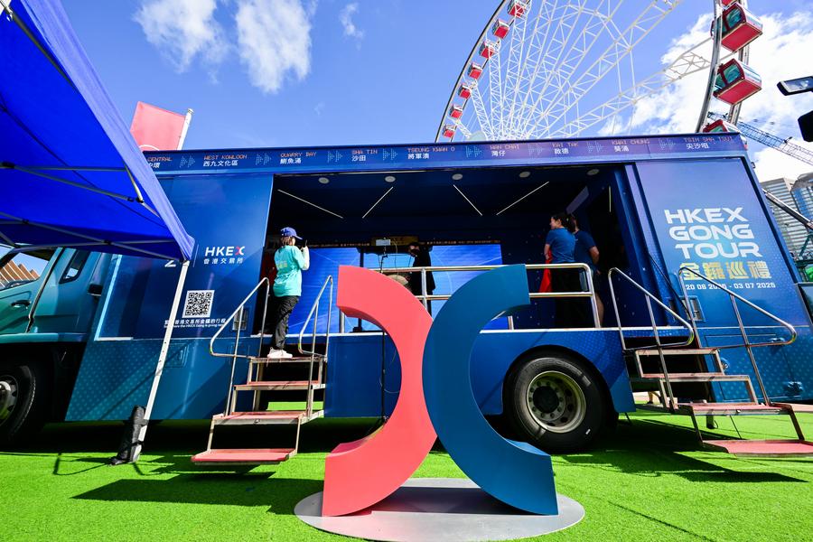 HONG KONG, July 9 (Xinhua) -- Amid the frenzy of Hong Kong's IPO market, the golden gong from the Hong Kong Exchanges and Clearing Limited (HKEX) was recently showcased across Hong Kong during a two-week public parade.