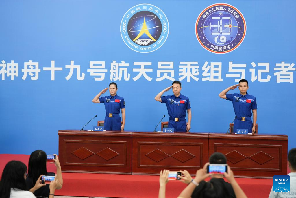 BEIJING, July 9 (Xinhua) -- The three astronauts from China's Shenzhou-19 crewed mission met the press in Beijing on Wednesday, their first public appearance after returning to Earth in April.