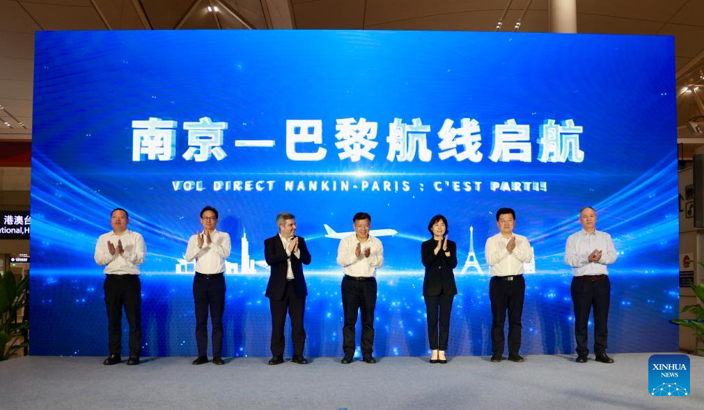 NANJING, July 9 (Xinhua) -- China Eastern Airlines inaugurated a direct flight route between Nanjing and Paris on Wednesday morning, connecting the capital of Jiangsu Province -- one of China's economic powerhouses -- with the European destination.