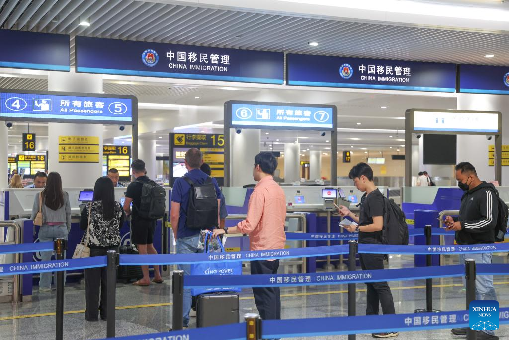 The number of inbound and outbound foreign travelers passing through Chongqing has surpassed 330,000 in the first half of this year, fueled by upgraded visa-free policies such as the 240-hour visa-free transit program and unilateral visa-free access program. (Xinhua/Huang Wei)