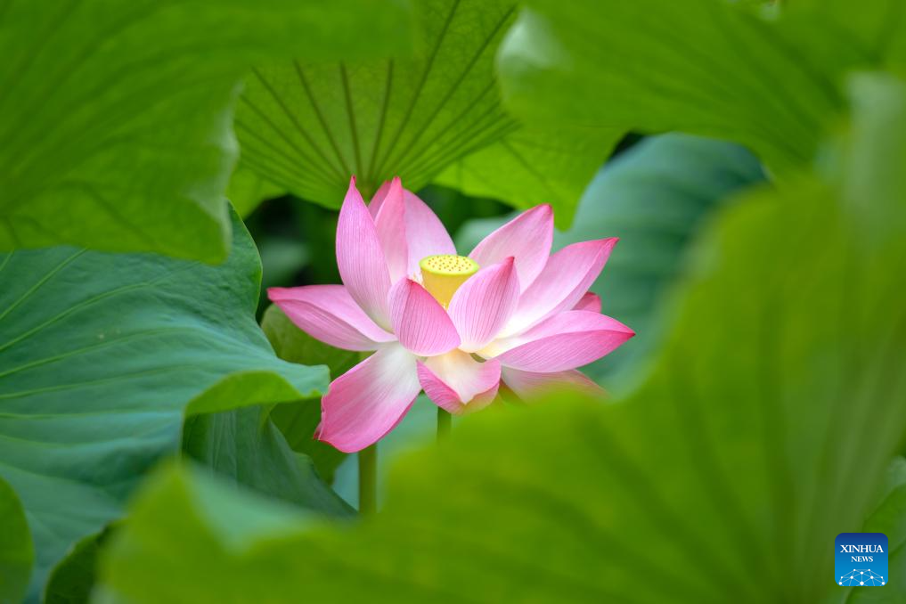 This photo taken on July 9, 2025 shows a lotus flower at Daguan Park in Kunming, southwest China's Yunnan Province. (Xinhua/Peng Yikai)