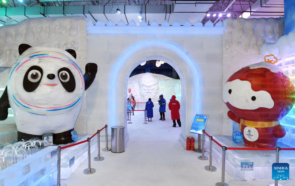 Tourists visit newly upgraded ice, snow art gallery of Sun Island scenic spot in Harbin
