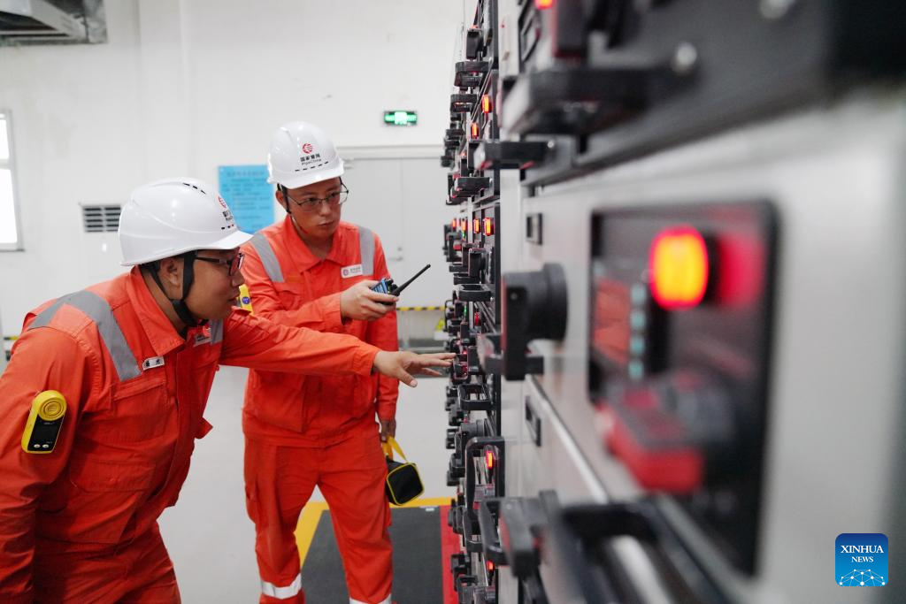 Workers maintain a compressor at a gas transmission pipeline station in Heihe, northeast China's Heilongjiang Province, July 9, 2025. As of July 10, the cumulative gas transmission volume of the China-Russia east-route natural gas pipeline's China section has surpassed 100 billion cubic meters. The pipeline's China section begins in Heihe, a city in the country's northeast bordering Russia, and transports natural gas from Siberia all the way south to Shanghai, China's economic and financial hub. (Xinhua/Wang Song)