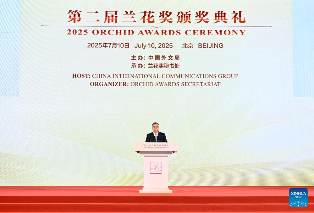 BEIJING, July 10 (Xinhua) -- The second Orchid Awards ceremony was held in Beijing on Thursday, honoring China's foreign friends and organizations that have promoted the shared values of humanity, facilitated cultural exchange between China and the rest of the world, and strengthened popular support for jointly building a community with a shared future for humanity.