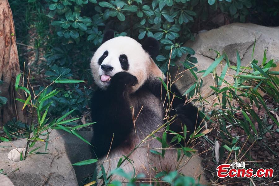 A giant panda savors its food at the Chengdu Research Base of Giant Panda Breeding in southwest China's Sichuan Province on July 10, 2025. (Photo/China News Service)