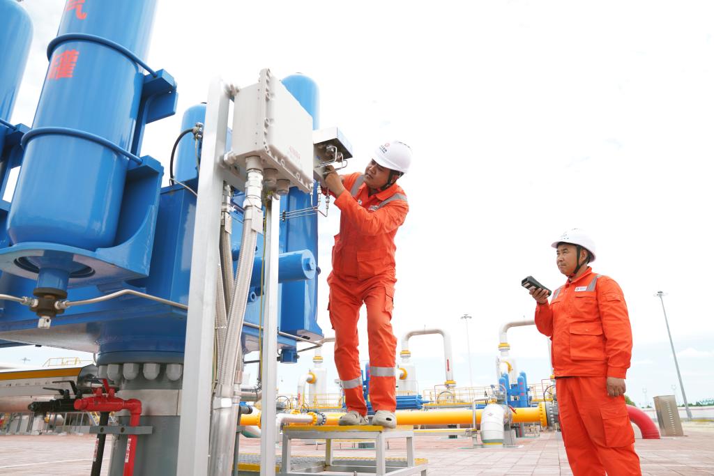 Workers check facilities at a gas transmission pipeline station in Heihe, northeast China's Heilongjiang Province, July 9, 2025. (Xinhua/Wang Song)