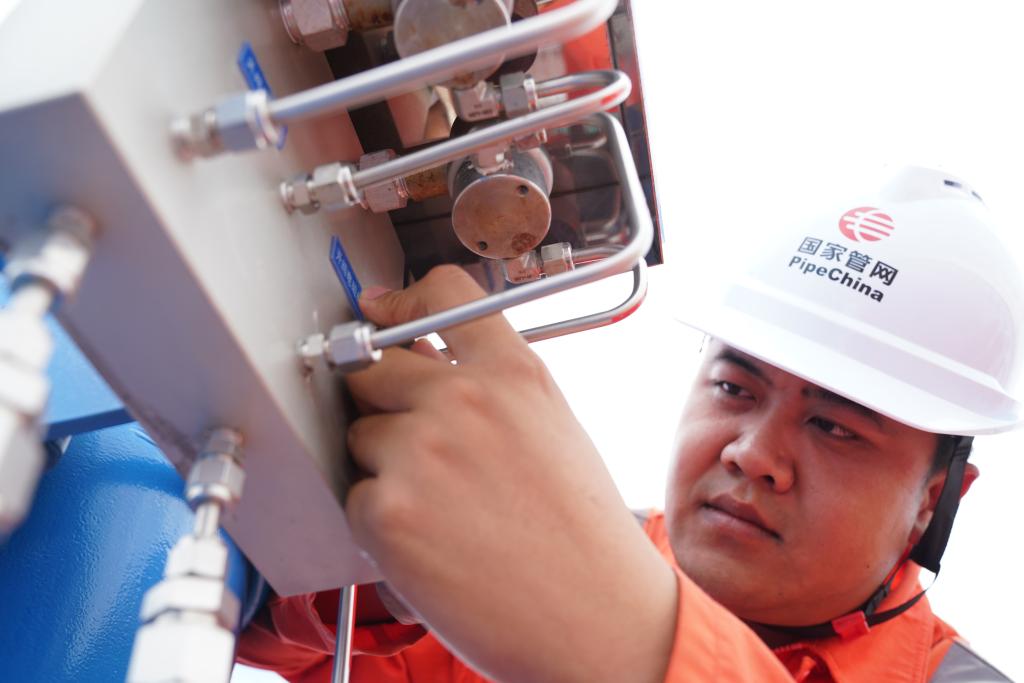 Engineers check facilities at a gas transmission pipeline station in Heihe, northeast China's Heilongjiang Province, July 9, 2025. (Xinhua/Wang Song)