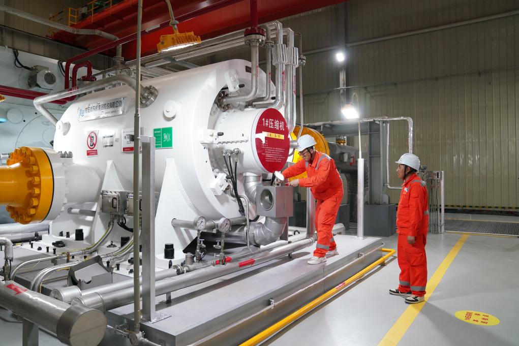 Workers maintain a compressor at a gas transmission pipeline station in Heihe, northeast China's Heilongjiang Province, July 9, 2025. (Xinhua/Wang Song)