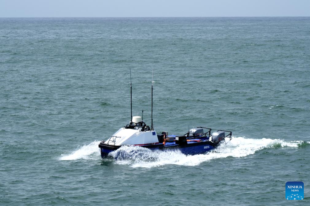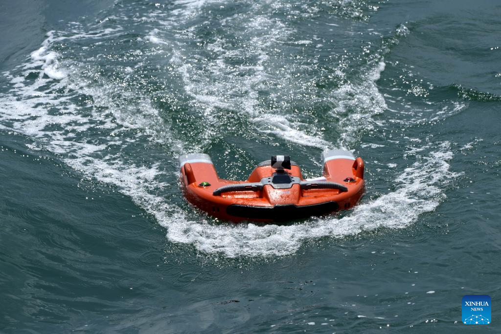 The "Dolphin 3" surface rescue robot conducts test in the northern waters of the South China Sea, July 9, 2025. (Xinhua/Zhang Jiansong)