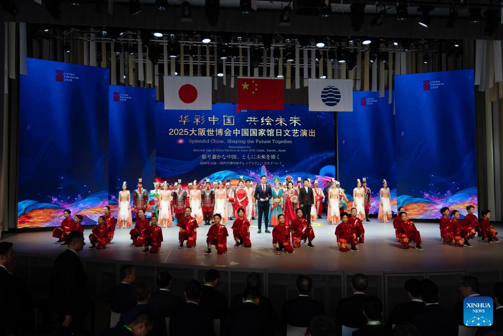 This photo taken on July 11, 2025 shows a performance for China's National Pavilion Day at Expo 2025 Osaka in Osaka, Japan. China's National Pavilion Day event kicked off at Expo 2025 Osaka on Friday. (Xinhua/Li Guangzheng)