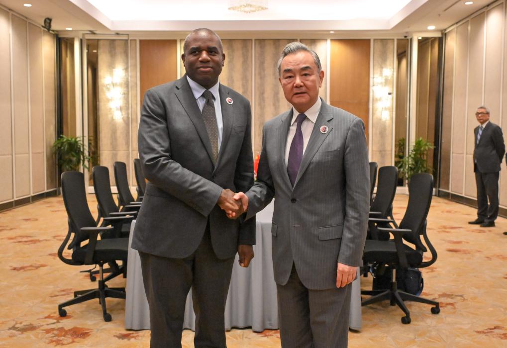 Chinese Foreign Minister Wang Yi, also a member of the Political Bureau of the Communist Party of China Central Committee, meets with British Foreign Secretary David Lammyn in Kuala Lumpur, Malaysia, July 11, 2025. (Photo by Chong Voon Chung/Xinhua)
