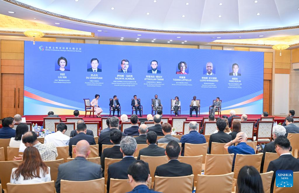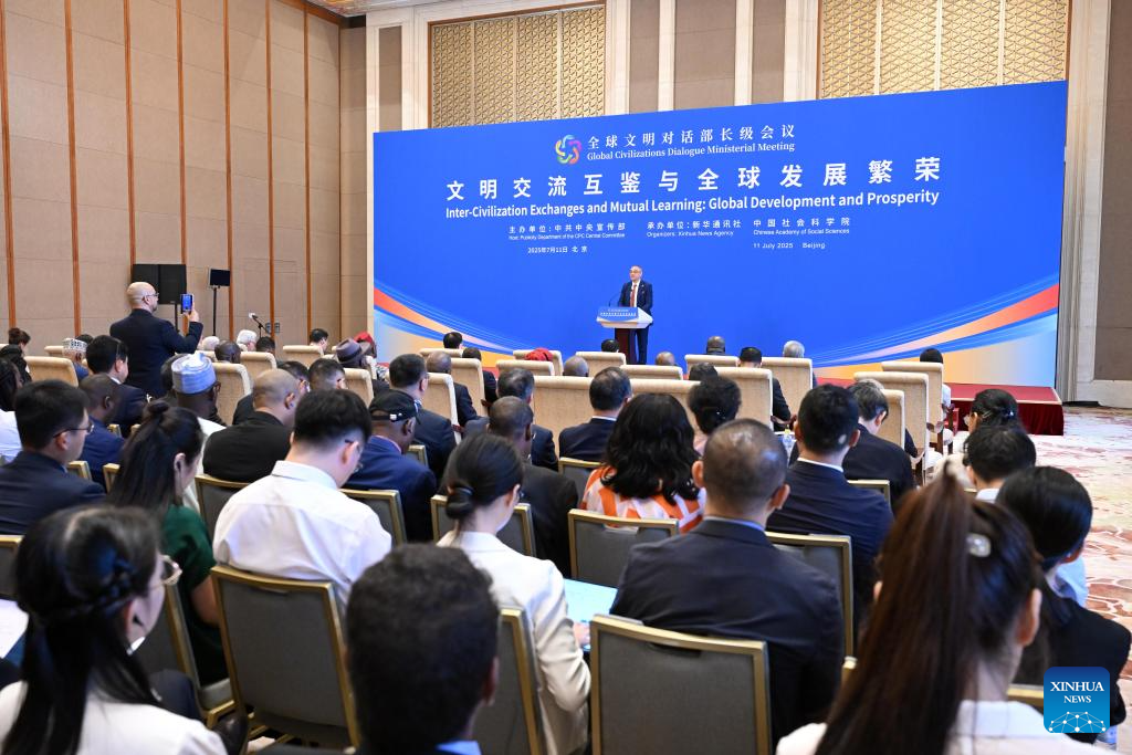 This photo taken on July 11, 2025 shows the sub-forum themed on "Inter-Civilization Exchanges and Mutual Learning: Cultural Inheritance and Innovation" held during the Global Civilizations Dialogue Ministerial Meeting in Beijing, capital of China. Six parallel sub-forums of the Global Civilizations Dialogue Ministerial Meeting were held here on Friday. (Xinhua/Chen Yehua)