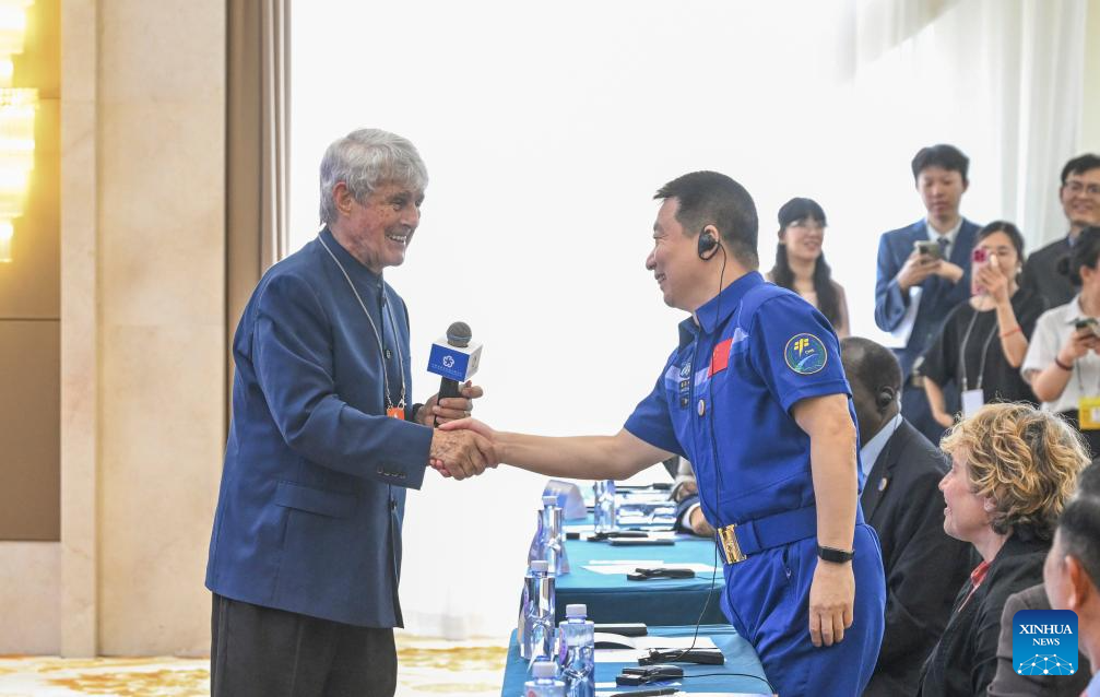 Bora Milutinovic (1st L), former coach of the Chinese national football team, shakes hands with Yang Liwei, deputy chief designer of China's manned space program, at the sub-forum themed on "Inter-Civilization Exchanges and Mutual Learning: Understanding and Friendship Among Peoples" during the Global Civilizations Dialogue Ministerial Meeting in Beijing, capital of China, July 11, 2025. Six parallel sub-forums of the Global Civilizations Dialogue Ministerial Meeting were held here on Friday. (Xinhua/Chen Yehua)