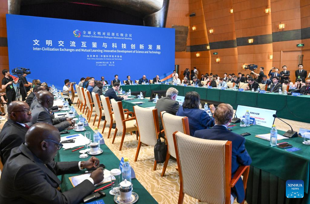 This photo taken on July 11, 2025 shows the sub-forum themed on "Inter-Civilization Exchanges and Mutual Learning: Innovative Development of Science and Technology" held during the Global Civilizations Dialogue Ministerial Meeting in Beijing, capital of China. Six parallel sub-forums of the Global Civilizations Dialogue Ministerial Meeting were held here on Friday. (Xinhua/Chen Yehua)