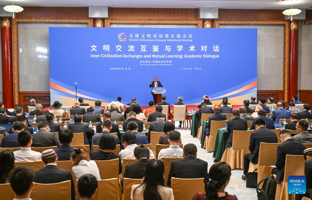 This photo taken on July 11, 2025 shows the sub-forum themed on "Inter-Civilization Exchanges and Mutual Learning: Academic Dialogue" held during the Global Civilizations Dialogue Ministerial Meeting in Beijing, capital of China. Six parallel sub-forums of the Global Civilizations Dialogue Ministerial Meeting were held here on Friday. (Xinhua/Chen Yehua)