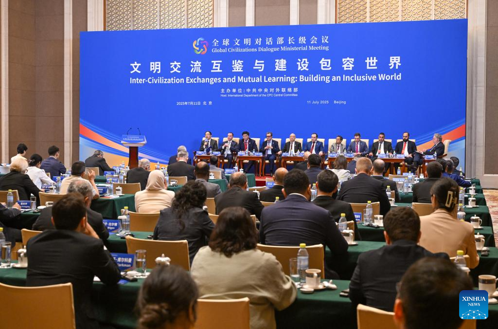 This photo taken on July 11, 2025 shows the sub-forum themed on "Inter-Civilization Exchanges and Mutual Learning: Building an Inclusive World" held during the Global Civilizations Dialogue Ministerial Meeting in Beijing, capital of China. Six parallel sub-forums of the Global Civilizations Dialogue Ministerial Meeting were held here on Friday. (Xinhua/Chen Yehua)