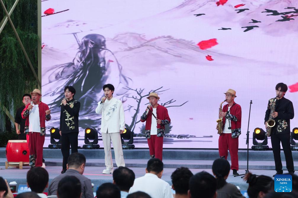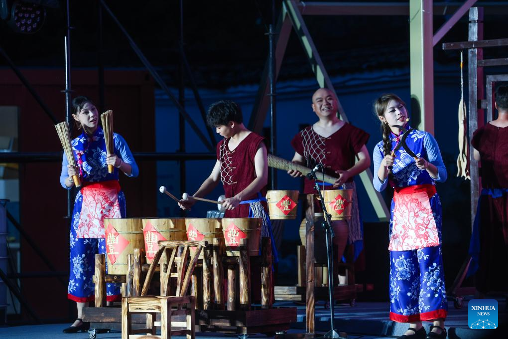 Actors perform during the village summer musical season in Sandu Township, Jiande City, east China's Zhejiang Province, July 11, 2025. (Xinhua/Xu Yu)