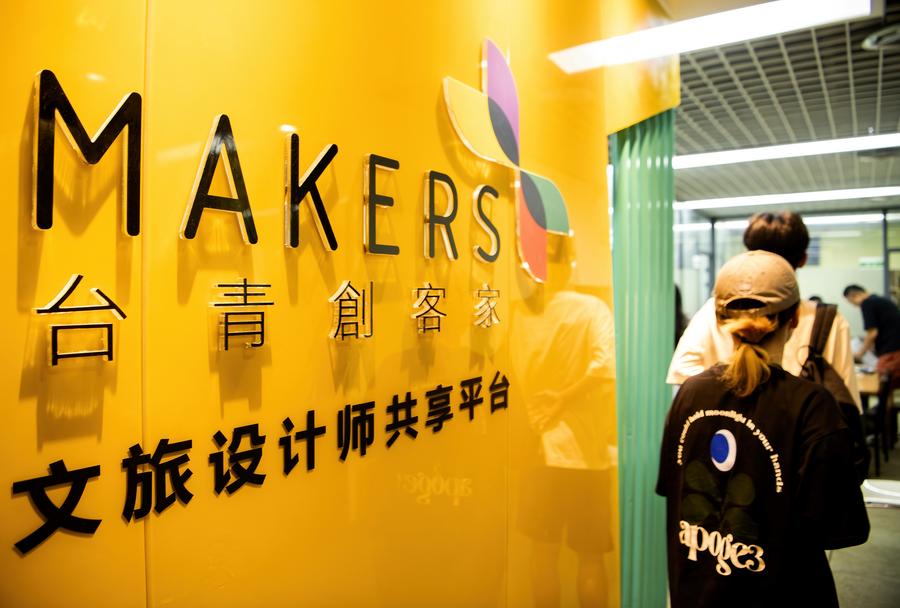 This photo taken on June 14, 2024 shows a shared platform for cultural and tourism designers at T-makers in Xiamen, southeast China's Fujian Province. Based in Xiamen, T-makers is a platform dedicated to providing services of innovation and entrepreneurship for young people from both sides of the Taiwan Strait. (Xinhua/Wei Peiquan)