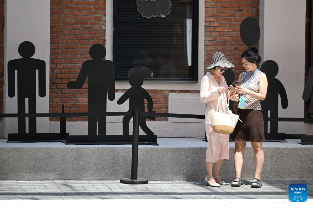 People are seen at the Tianjin Academy of Fine Arts Art Block in north China's Tianjin, July 12, 2025. The art block, which opened to the public recently, was built with the support of Tianjin Academy of Fine Arts. It is Tianjin's first urban renewal program which combines distinct four functions in one: urban block, community, scenic area, as well as campus. (Xinhua/Sun Fanyue)