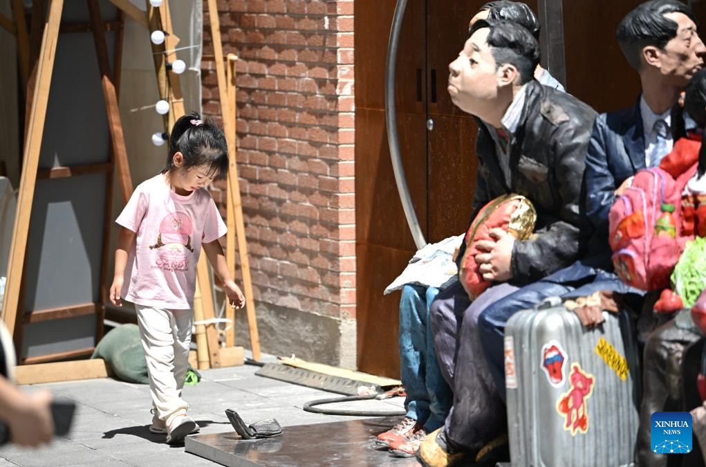 A child is seen at the Tianjin Academy of Fine Arts Art Block in north China's Tianjin, July 13, 2025. The art block, which opened to the public recently, was built with the support of Tianjin Academy of Fine Arts. It is Tianjin's first urban renewal program which combines distinct four functions in one: urban block, community, scenic area, as well as campus. (Xinhua/Li Ran)