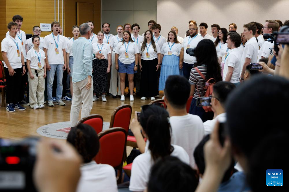 Choir members from a Chinese middle school perform in Beijing, capital of China, July 14, 2025. Bond with Kuliang: 2025 China-U.S. Youth Choir Festival, with the theme of "Singing for Peace" is held in Beijing and Fuzhou from July 9 to 18.