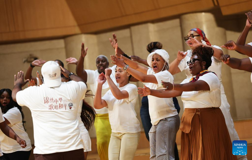 An American choir performs in Beijing, capital of China, July 14, 2025. Bond with Kuliang: 2025 China-U.S. Youth Choir Festival, with the theme of "Singing for Peace" is held in Beijing and Fuzhou from July 9 to 18.