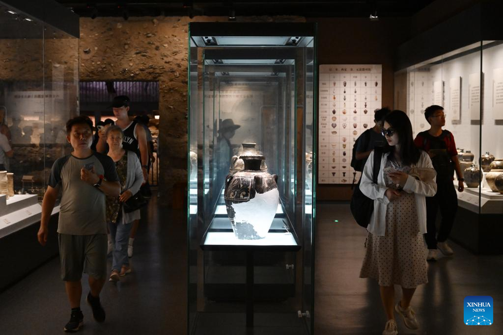 Tourists visit the Xixia Imperial Tombs Museum in Yinchuan, northwest China's Ningxia Hui Autonomous Region, July 13, 2025. China's Xixia Imperial Tombs were officially added to the UNESCO World Heritage List on Friday during the 47th session of the World Heritage Committee held in Paris, France. (Photo by Yuan Hongyan/Xinhua)