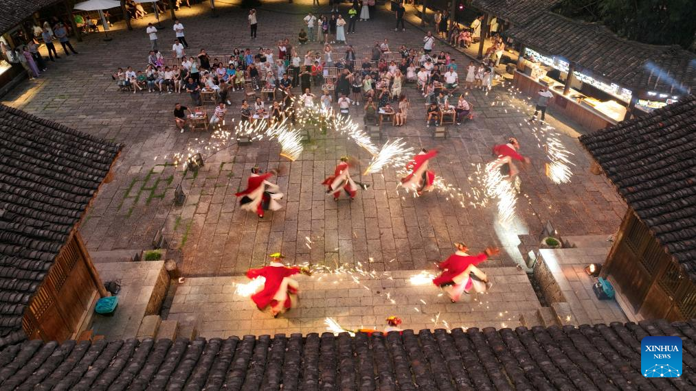 Visitors enjoy night views at a scenic spot in Anji County, Huzhou City of east China's Zhejiang Province, July 4, 2025. High temperature during the summer vacation has triggered new vitality of cooling economy across the country. (Photo by Pan Xuekang/Xinhua)