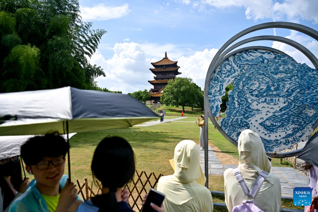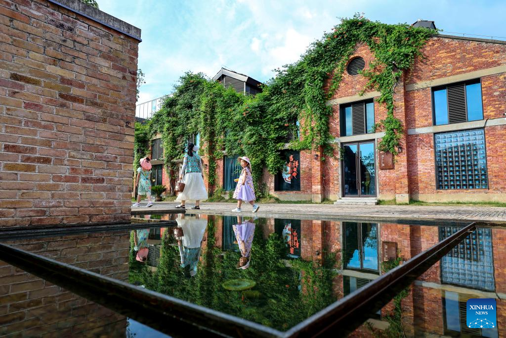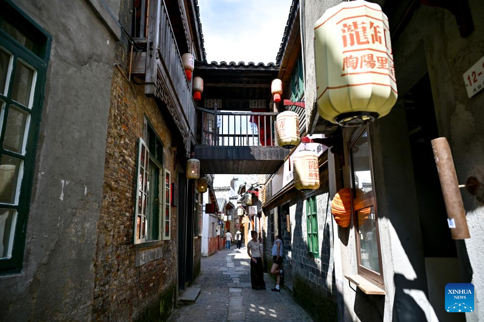 Tourists visit Taoyangli historical and cultural block in Jingdezhen City, east China's Jiangxi Province, July 13, 2025. Located in the heart of Jingdezhen, Taoyangli has successfully transformed from an old district into a thriving hub for cultural innovation and tourism in recent years. Today, it has become a must-visit destination for tourists. (Xinhua/Liu Jinhai)