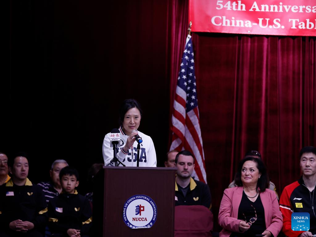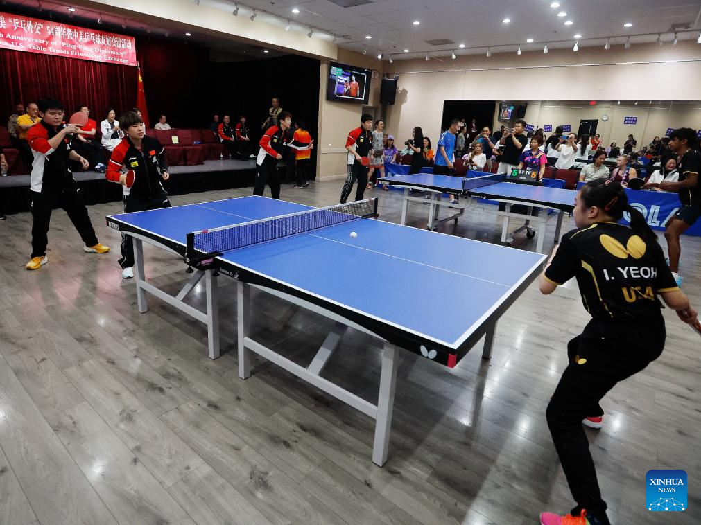 LAS VEGAS, United States, July 14 (Xinhua) -- Chinese and U.S. table tennis athletes and local enthusiasts gathered in Las Vegas on Sunday to commemorate the 54th anniversary of "Ping-Pong diplomacy," highlighting the lasting friendship between the two peoples through sport exchanges.