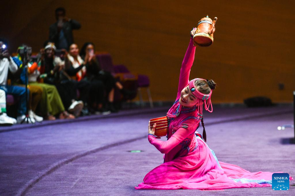 Inner Mongolian artists perform in Addis Ababa, the capital of Ethiopia, on July 13, 2025. A troupe of artists from Inner Mongolia, an autonomous region in north China, presented a performance of traditional and contemporary songs and dances in Addis Ababa, the capital of Ethiopia, on Sunday evening. (Xinhua/Michael Tewelde)