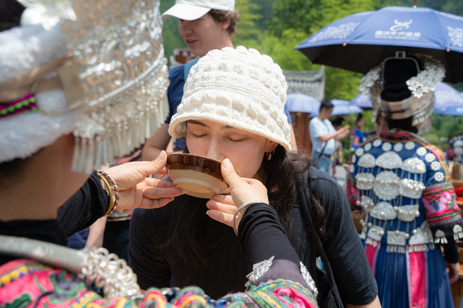 "Every moment here feels magical," Bogdan Skrypka, a British percussionist, said after experiencing a Miao gate-blocking ceremony, which entails drinking wine to enter the gate, and folk dances. He also added that the Lusheng (reed pipes) and drum performances convinced him this journey was worthwhile.