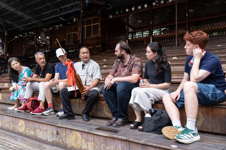 Musicians try to learn Lusheng techniques with Lusheng inheritor Yang Zhengping. (Photo/Yang Qian)