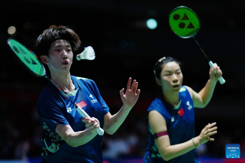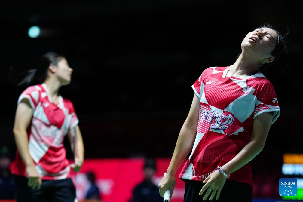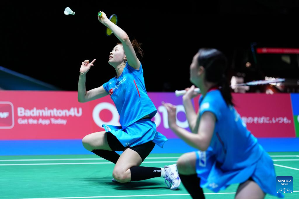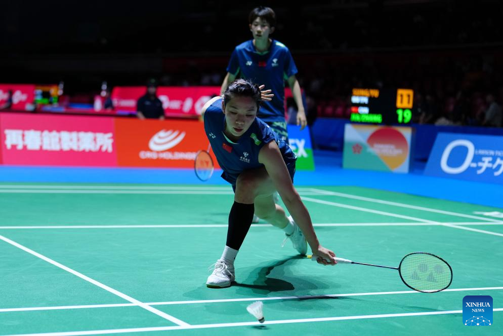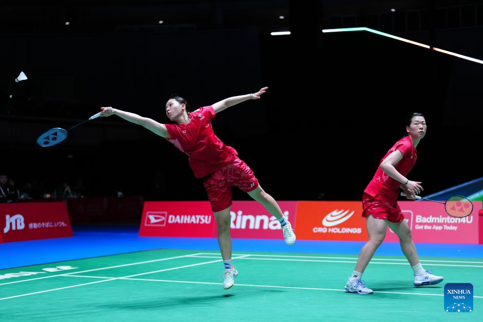 Jia Yifan/Zhang Shuxian (L) compete during the women's doubles round of 32 match between Jia Yifan/Zhang Shuxian of China and Sung Shuo Yun/Yu Chien Hui of Chinese Taipei at the Japan Badminton Open 2025 in Tokyo, Japan, July 15, 2025. (Xinhua/Jia Haocheng)
