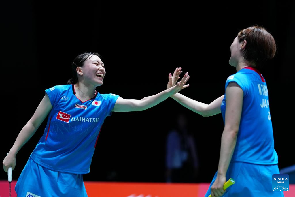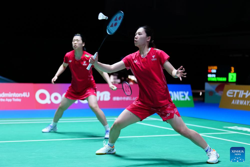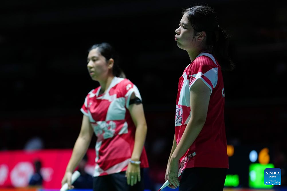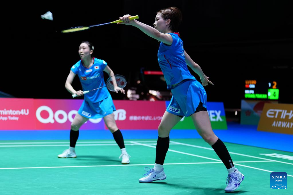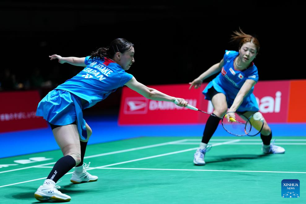 Jia Yifan/Zhang Shuxian (L) compete during the women's doubles round of 32 match between Jia Yifan/Zhang Shuxian of China and Sung Shuo Yun/Yu Chien Hui of Chinese Taipei at the Japan Badminton Open 2025 in Tokyo, Japan, July 15, 2025. (Xinhua/Jia Haocheng)