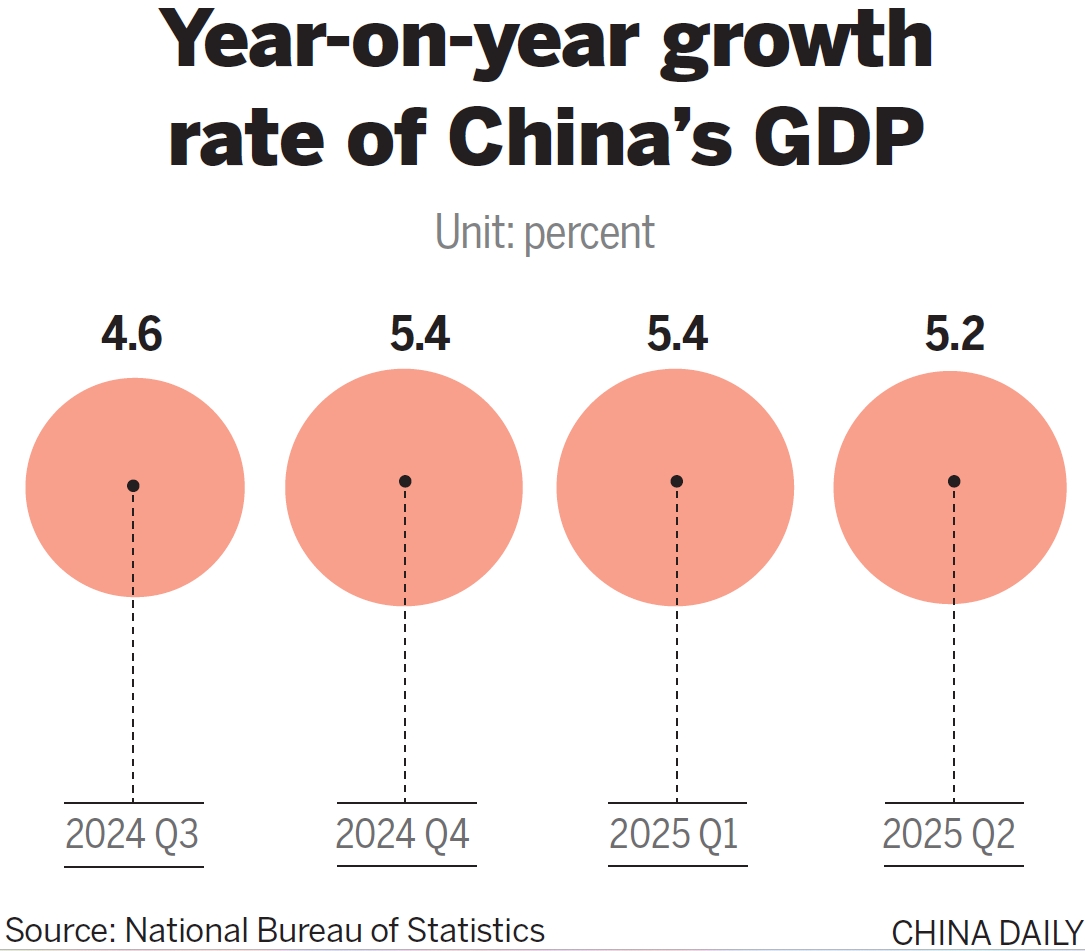 The Chinese economy expanded 5.3 percent year-on-year in the first half of 2025, official data showed on Tuesday, defying mounting global headwinds and providing a solid footing for achieving the full-year growth target of around 5 percent.