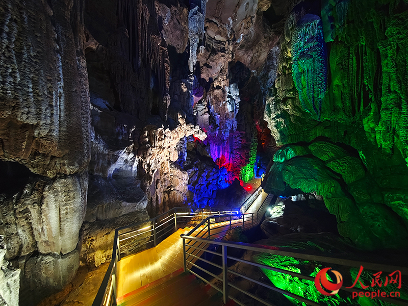 Photo shows unique formations of stalactites at Jinzhong Mountain tourist resort in Yongfu county, Guilin city, south China's Guangxi Zhuang Autonomous Region. (People's Daily Online/Wei Huan)