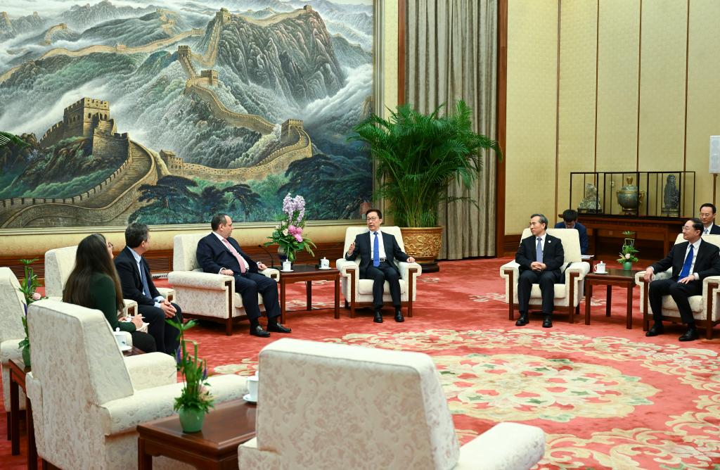 Chinese Vice President Han Zheng meets with Dimitri Kerkentzes, Secretary General of the Bureau International des Expositions (BIE) in Beijing, capital of China, July 15, 2025. (Xinhua/Zhang Ling)