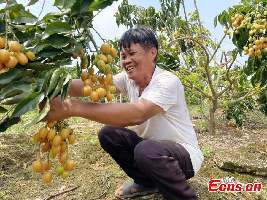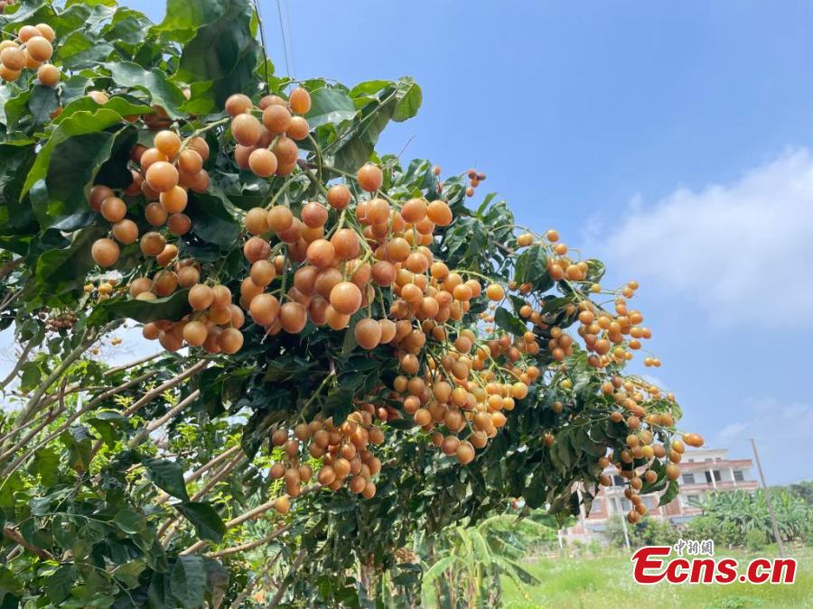 The golden wampee fruits are at peak harvest season in Wuling Village, Shuangding Town, Nanning City, south China's Guangxi Zhuang Autonomous Region, July 15, 2025. (Photo: China News Service/Jiang Lili)