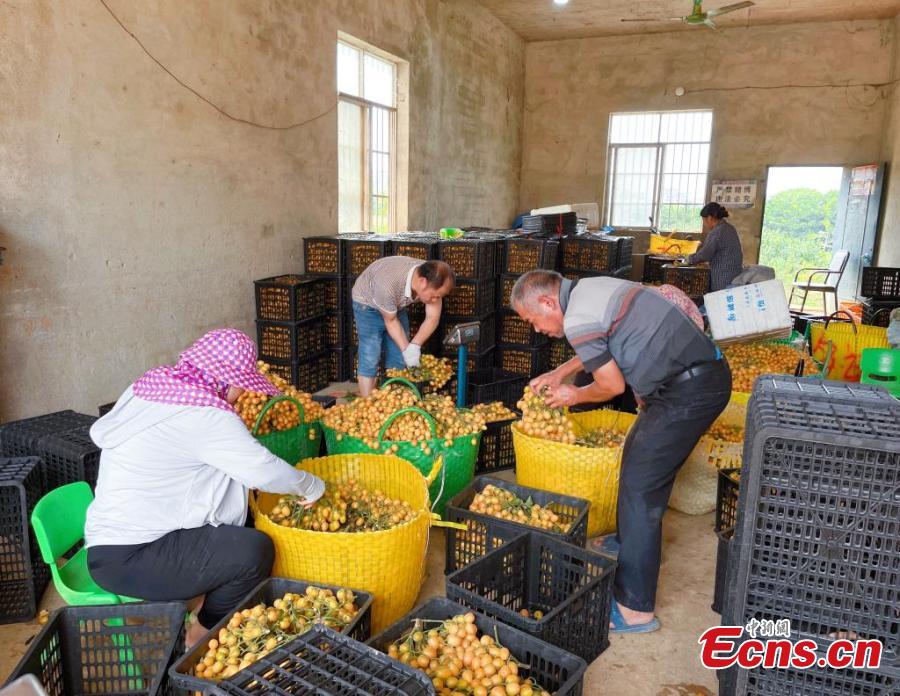 Villagers pack freshly harvested wampee fruits into boxes in Nanning, south China's Guangxi Zhuang Autonomous Region, July 15, 2025. (Photo: China News Service/Jiang Lili)