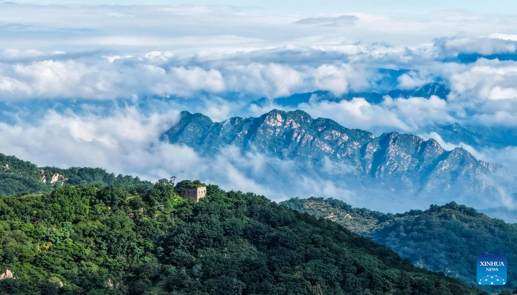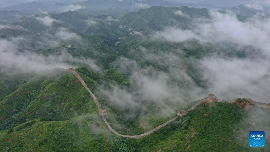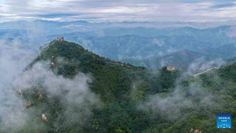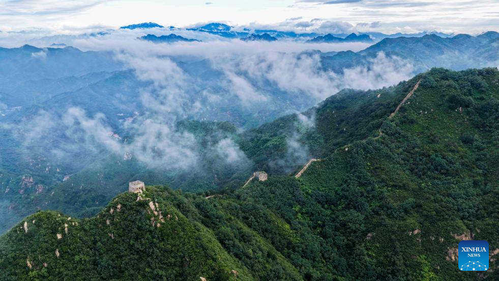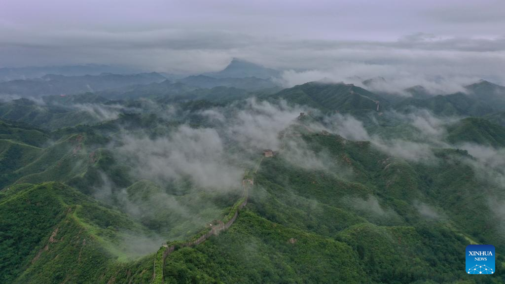 An aerial drone photo taken on July 16, 2025 shows a view of the Great Wall in Zunhua City, north China's Hebei Province. (Photo by Liu Mancang/Xinhua)
