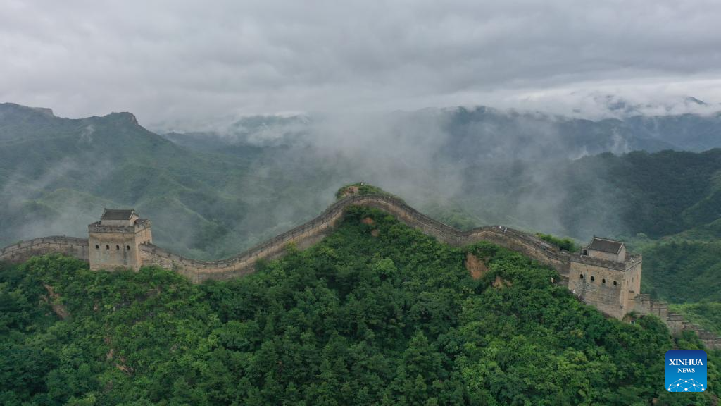 An aerial drone photo taken on July 16, 2025 shows a view of the Jinshanling section of the Great Wall in Luanping County of Chengde, north China's Hebei Province. (Photo by Zhou Wanping/Xinhua)