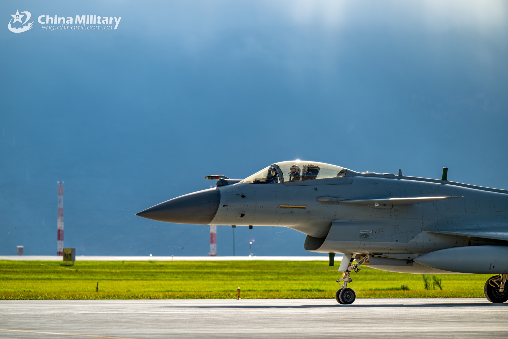 A J-10 multi-role fighter jet attached to an aviation brigade with the air force under the Chinese PLA Southern Theater Command taxis on the runway during a flight training exercise in early July, 2025. (eng.chinamil.com.cn/Photo by Xiao Rui)