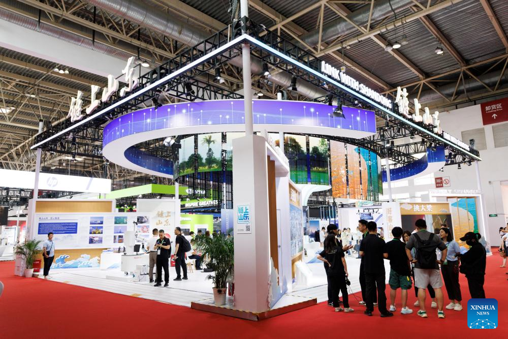 This photo taken on July 16, 2025 shows the pavilion of Shandong Province during the third China International Supply Chain Expo (CISCE) in Beijing, capital of China.