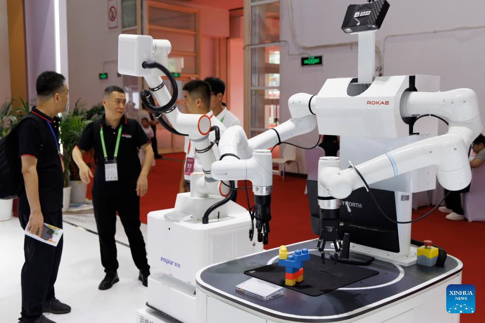 People view robots at the pavilion of Shandong Province during the third China International Supply Chain Expo (CISCE) in Beijing, capital of China, July 16, 2025.
