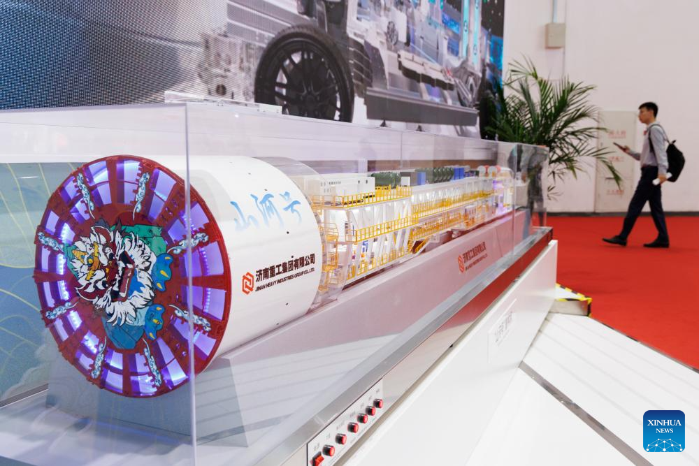 A model of a tunnel boring machine is seen at the pavilion of Shandong Province during the third China International Supply Chain Expo (CISCE) in Beijing, capital of China, July 17, 2025.